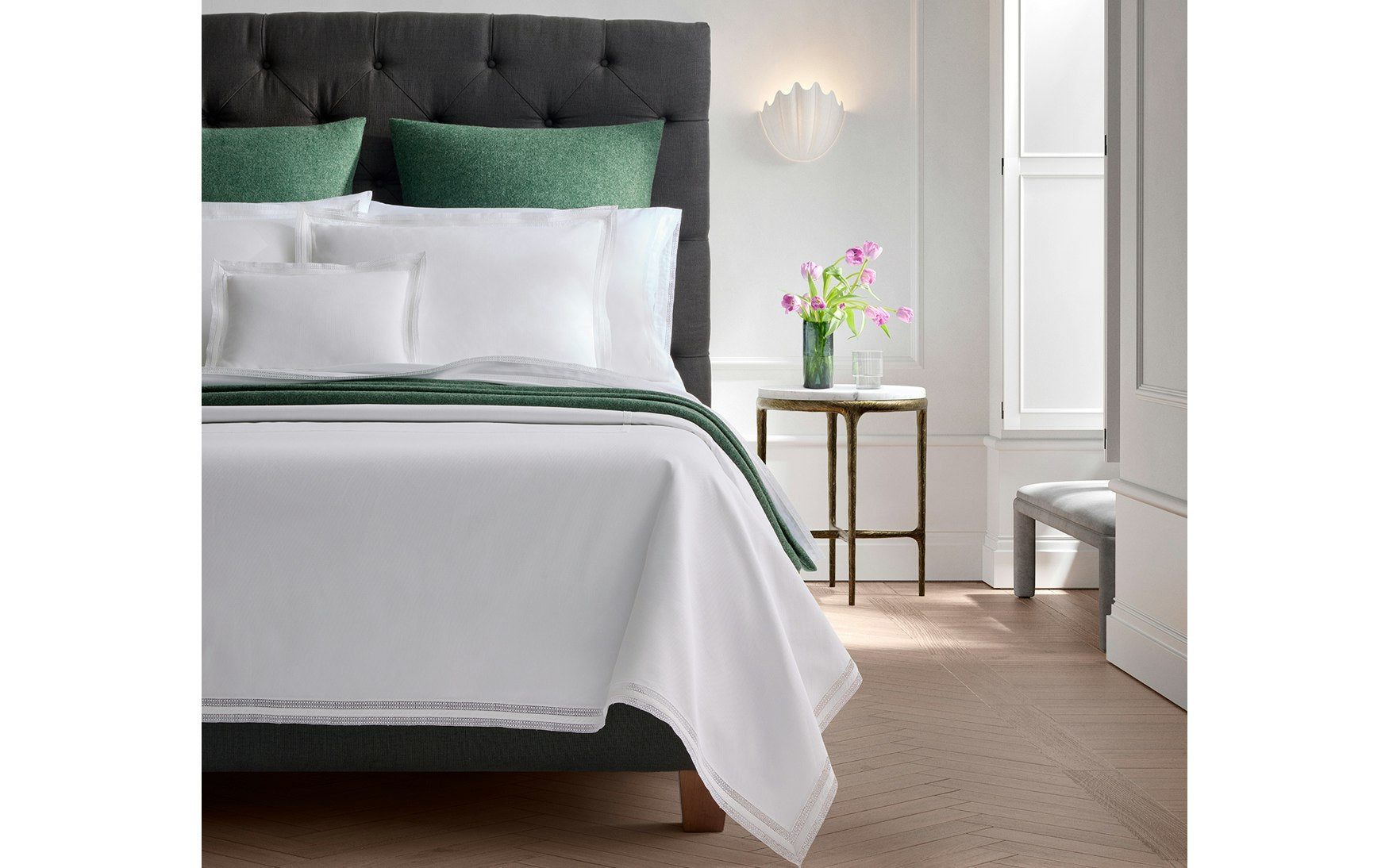 Crafted from 100% superfine merino wool, Cosmo is known for its remarkably soft hand and temperature regulating qualities. Crisp edges and a range of versatile colors make Cosmo an adaptable option for beds of all styles year-round.