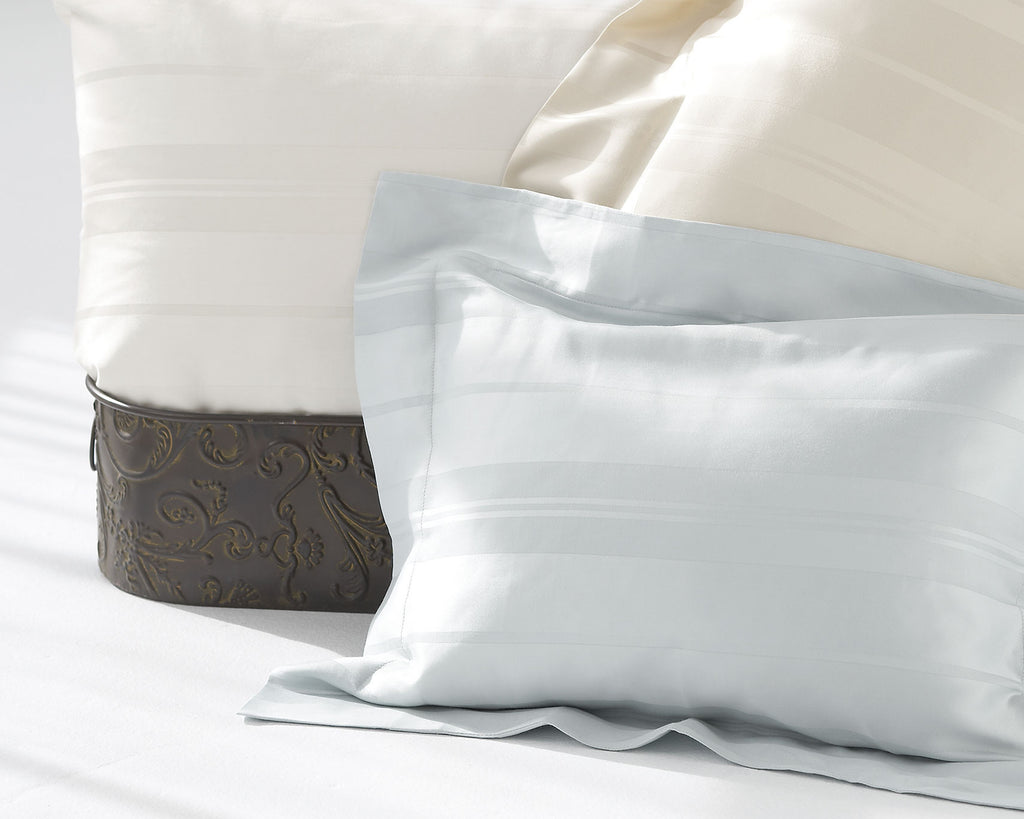 Evocative of the City of Lucca, a legendary romantic town rich in the arts, our Lucca pattern is an intricate variegated damask stripe. Luxuriously soft Legna bedding has true and lasting beauty.